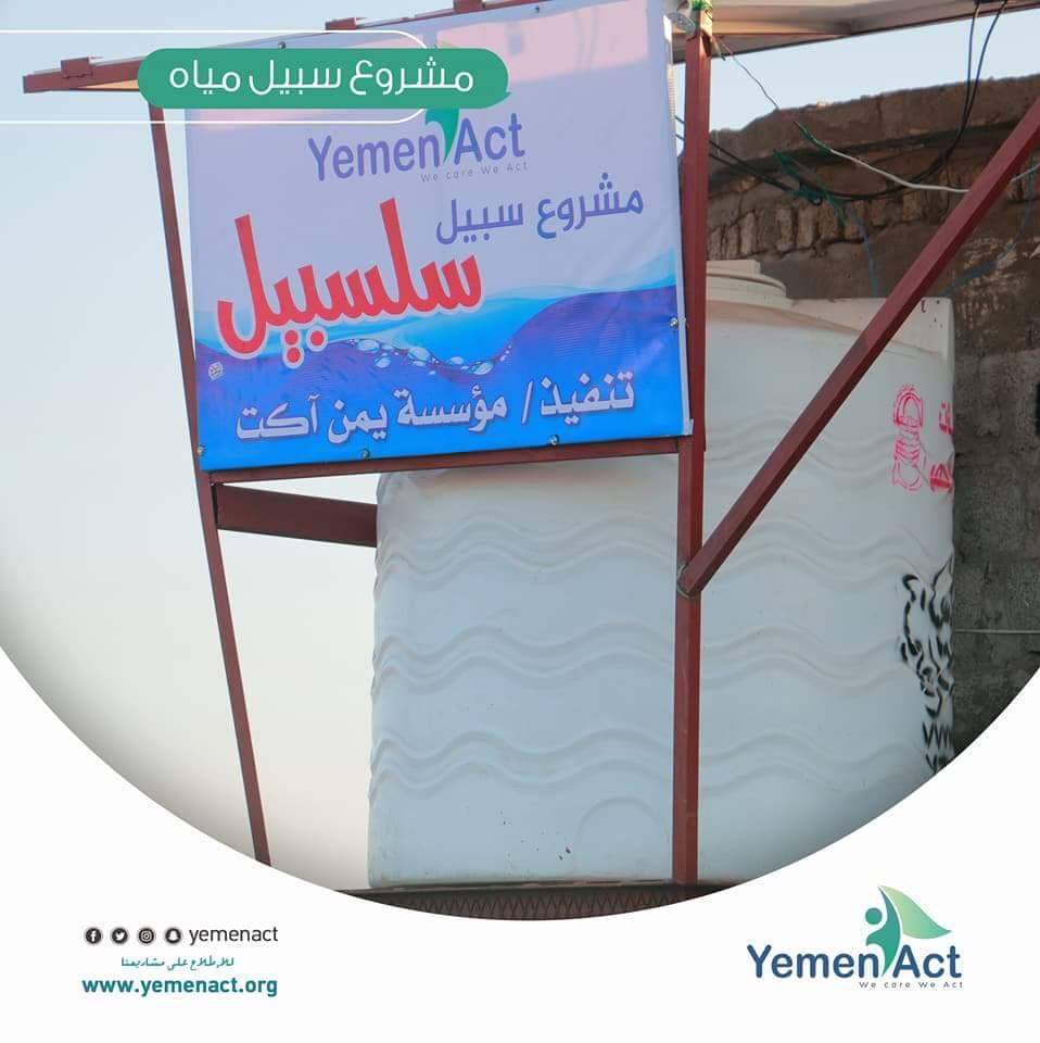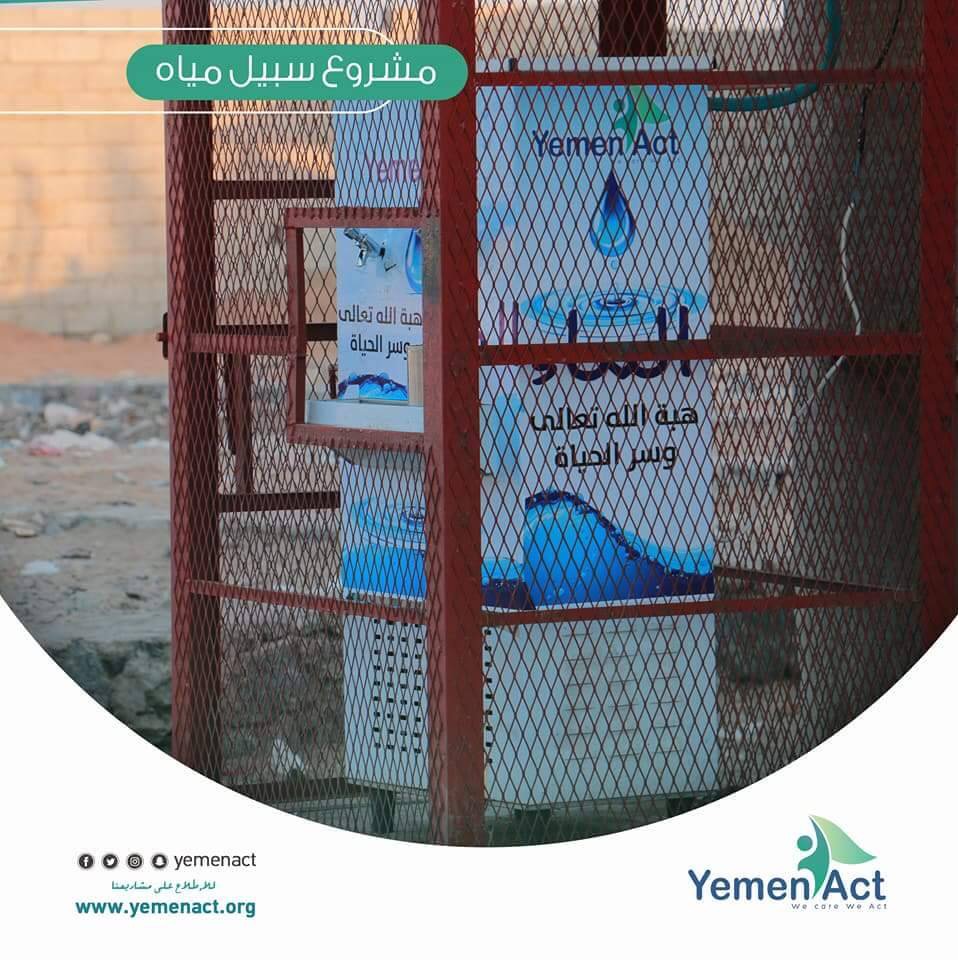مشروع مياه السبيل والذي استهدف ثلاث مديريات في مركز المحافظة بالحديدة ، ليستفيد منه المئات، هذا المشروع عمل على تقديم المياه بترامس وخزانات حافظة لمياه الشرب بمكان أمن ومحكم الحفظ ، حيث يقدم فيه الماء بشكل مجاني يشرب منه عابرون السبيل والفقراء والمساكين..فيتم تعبئته هذه التراميس والخزانات الحافظة للماء بشكل دوري مستمر من قبل فريقنا التطوعي على مدار العام.