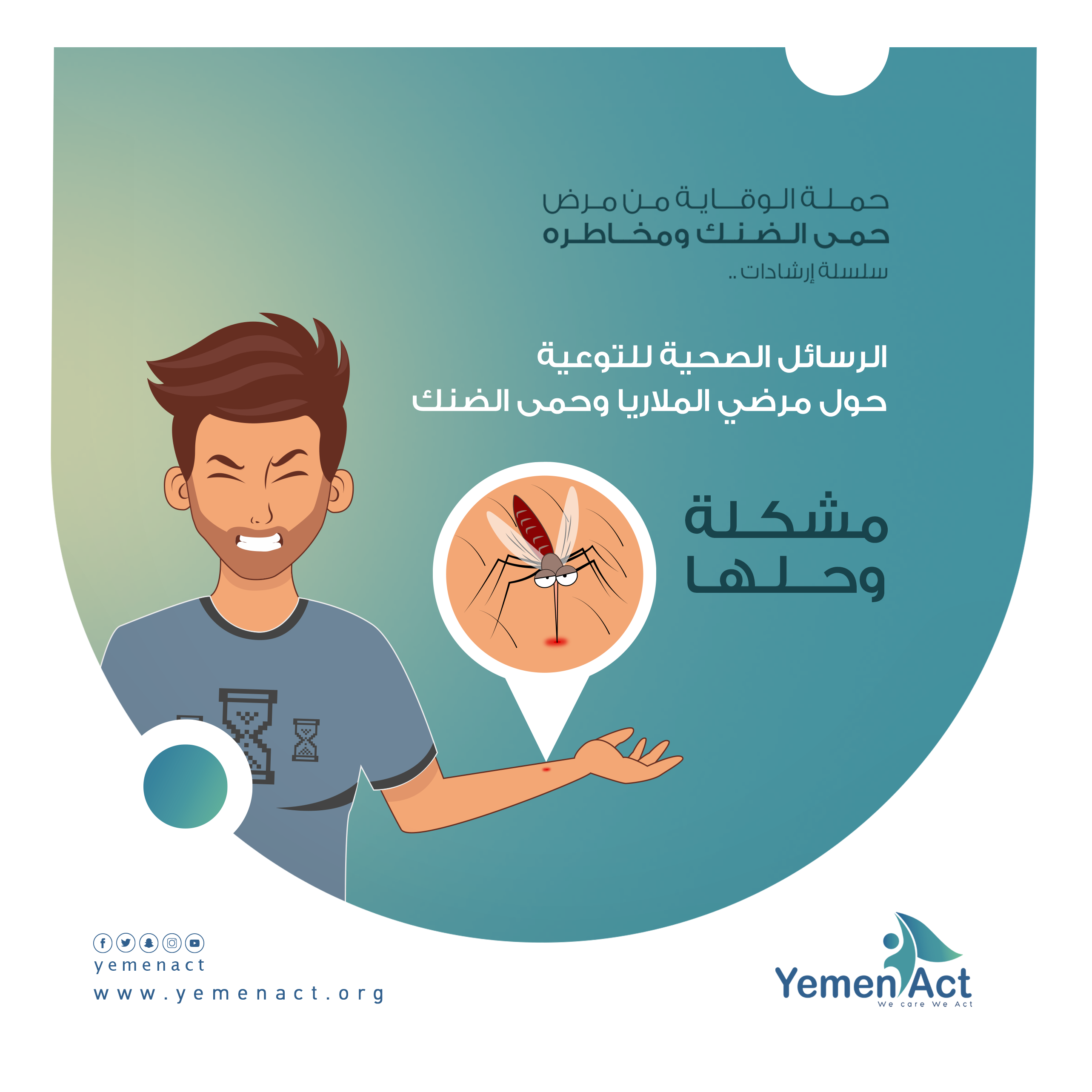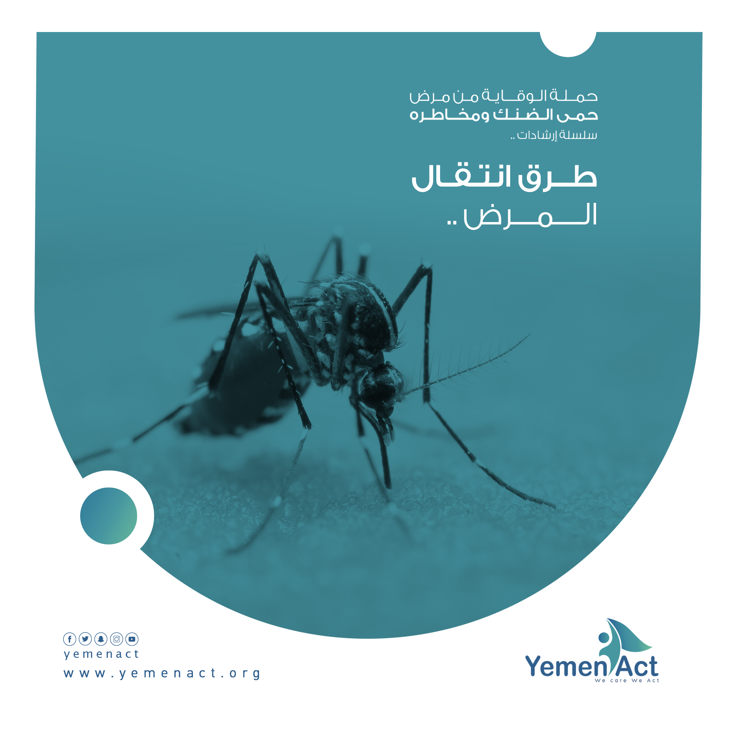 قمنا في منظمة يمن اكت بعمل “حملة الوقاية من حمى الضنك ” والتي كانت على مواقع _ الفيس بوك_ التواصل الإجتماعي ، بهدف مكافحة هذا الوباء المستفحل بين أوساط المجتمع والعمل على توعيتهم وذلك بنشر معلومات مفيدة تختص بالتثقيف الصحي.